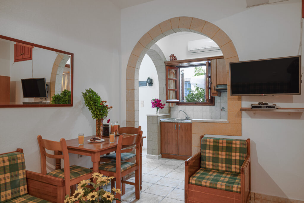 Ζήστε μια άνετη και χαλαρωτική διαμονή στα δίκλινα studios μας, ιδανικά για ζευγάρια ή μικρές οικογένειες.