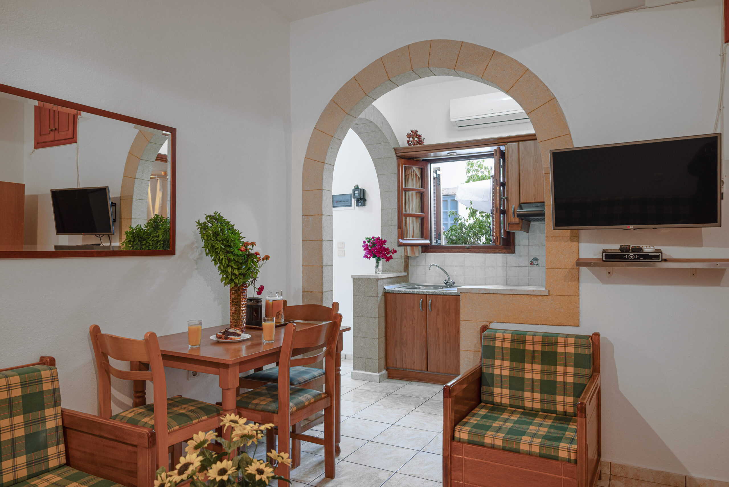 – Τηλεόραση LCD και κλιματισμό και στα δύο δωμάτια για άνετη διαμονή.