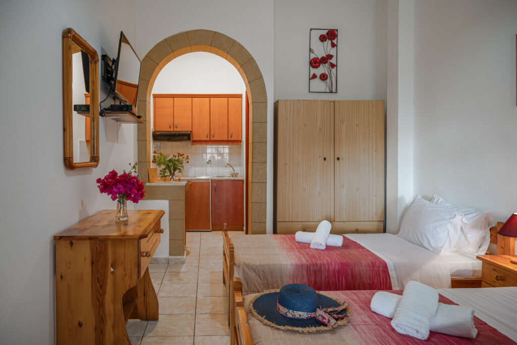 Ζήστε μια άνετη και χαλαρωτική διαμονή στα δίκλινα studios μας, ιδανικά για
